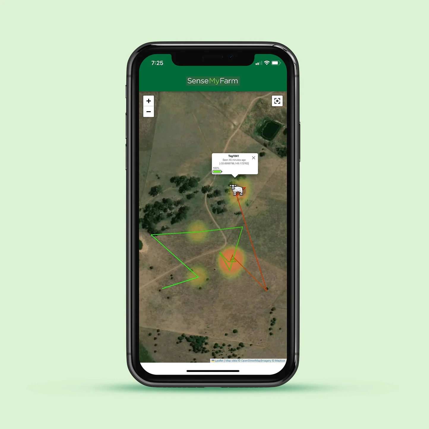 Using the FarmSense mobile app, you can set your farm & paddock boundaries, and be alerted anytime any of your herd moves outside